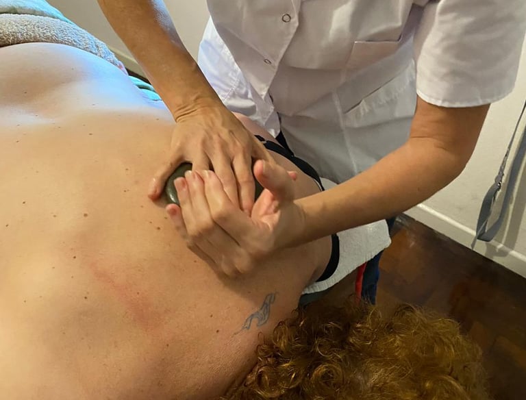 Terapia relajante que combina calor y masaje para aliviar tensiones, reducir el estrés y armonizar cuerpo y mente.